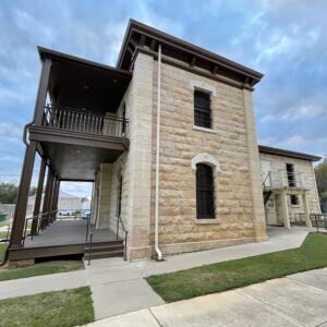 Most imposing public building in early Robertson County. After becoming county seat in 1870, Calvert lost many leaders in 1873 yellow fever epidemic. As planned, this Courthouse was begun in 1875; but before its completion, Franklin was named county seat, in 1879. Robert A. Brown, a merchant, investor and planter, purchased this building in 1885. With help of his wife, Lucy Herndon Brown, he made it into a residence. In 1909 his heirs sold it to Mrs. Fannie L. Hammond, in whose family it remained until 1966, when it became a museum. Recorded Texas Historic Landmark – 1968