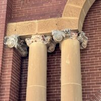 The courthouse is a two-story red brick building with limestone trim, designed by Oklahoma architect J.W. Wills. With its symmetrical façade, arched windows, and understated portico, the structure reflects the Classical Revival style common in early 20th-century Texas courthouses—but with a frontier simplicity that suits its surroundings. There’s no clock tower or dome—just clean lines and a sense of dignity appropriate to a place where justice was (and still is) dispensed with calm authority.