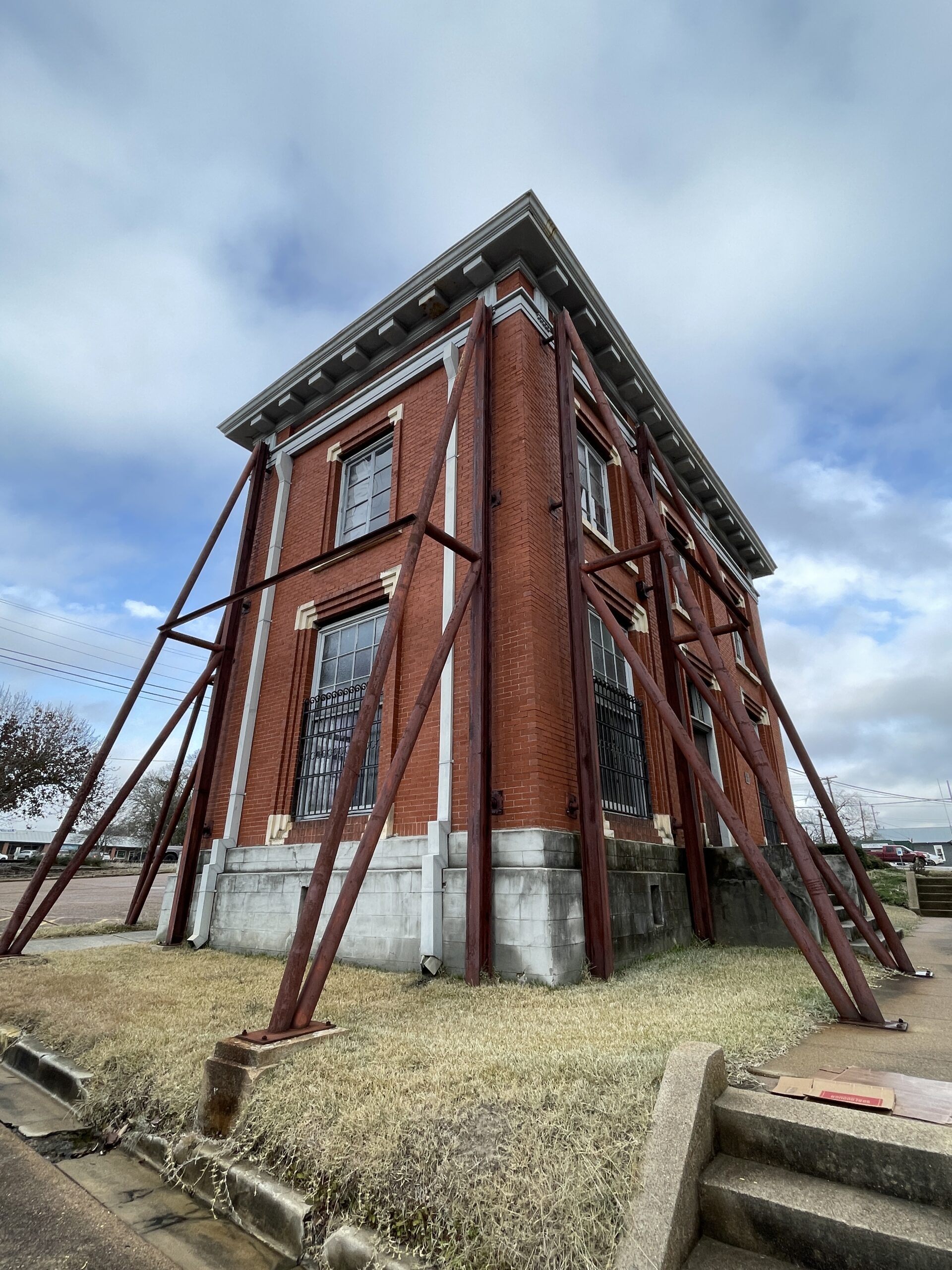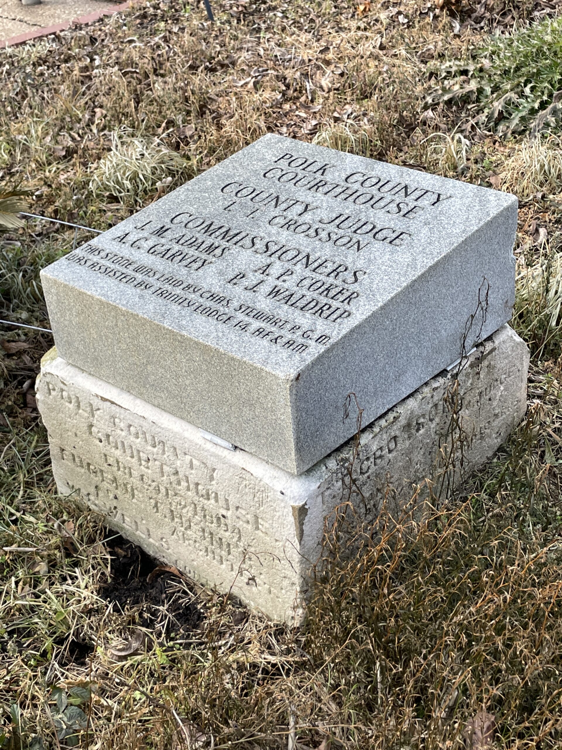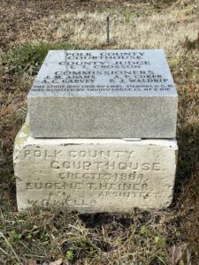 “In 1905, the Polk County Courthouse Annex (also known as the County Clerk Building) was built to house the County Clerk and County records on the southwest corner of the courthouse square. The 2-story building of locally produced brick was designed in a Classical Revival style by Houston architect Lewis Sterling Green. It was built by Henderson Shearer & Miller for $6,740.”