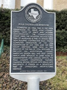 The Polk County Courthouse is located in Livingston, Texas.